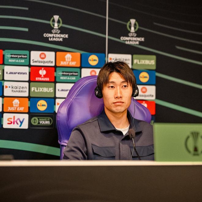欧协联客场对阵佛罗伦萨赛前,水晶宫中场镰田大地出席了发布会。